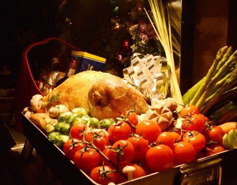 - ...拿鱼现切现食、鲍鱼、生蚝、皇帝蟹、翡翠螺、烤火鸡、烤全羊、还有特别调制的热红酒,超级好吃的甜品