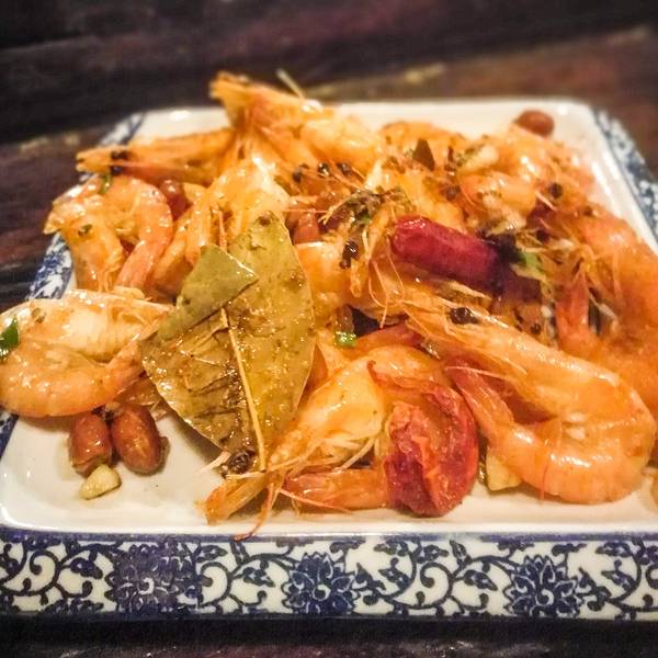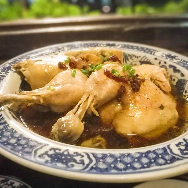 老板说很多明星来他们家都指明要吃这道土鸡煲,确实点的菜这道最好吃,肉质很嫩,加了咸肉一起煮很入味。椒盐虾只是明虾酱香芋艿用酒糟煮的,有点甜。总体来说默默的家价格还是很实在的,但是要过来吃一定要提早来排队。
