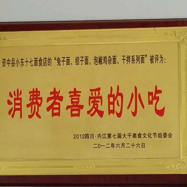 资中名小吃之一吧。在街上随便问一人,人家都能告诉你这家店在哪里。喜欢吃加双绍的,就是在面里同时加红烧兔子肉和肉末。资中的麻辣兔丁很好吃,这样加在面里吃也是一绝。