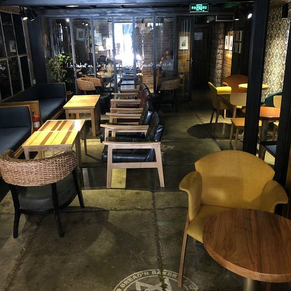 一进门,就先是一段长廊,左手边摆放了面包(全部是当天现做的),右手边是蛋糕和饮料制作区。这样的摆放设计真的很方便顾客。进门后,你就一路走过去,就选好了所有点心甜品,配上饮料一买单,直接拿着东西进入里面的用餐区就好了。不用在几排面包架前来回穿梭,真的很省力还不会漏下谁。。。里面就是它的用餐区了,对于咖啡馆来说,地方算是比较宽敞的。值得一提的是,它特别建了一个玻璃房,单独辟出了一处吸烟区。可以同时满足吸烟人群也不会让不吸烟的同学受到影响。真的很贴心了。还有二楼的空间!