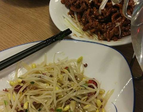 第一次在这吃感觉味道还不错呦!服务也比较好,服务比较周到,推荐京酱肉丝,土豆丝,香水鱼