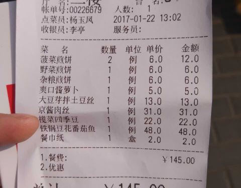 三个人吃了145,还不错!三个人吃了四笼煎饼 四个菜 一份鱼豆腐汤,清淡型口味。值得推荐
