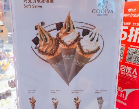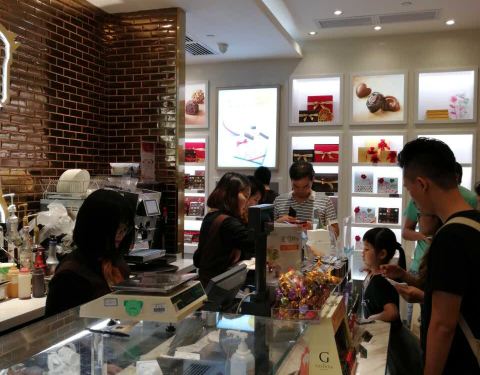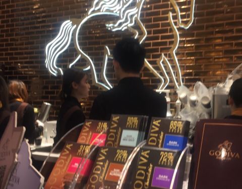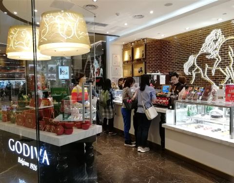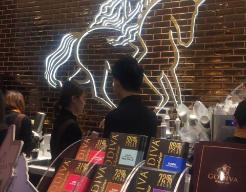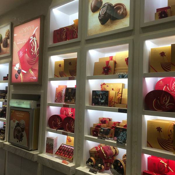 Godiva源自比利时的皇家御用巧克力,是全球连锁巧克力商店。在广州,这家巧克力店也开在高端商场里面,挺符合这个品牌高端的定位。
