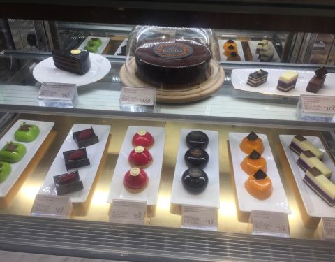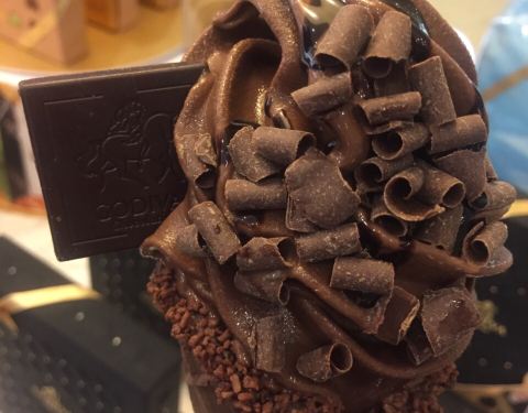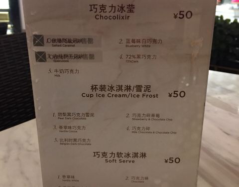 除了一颗颗巧克力以外,还有一系列巧克力的衍生产品,如:雪糕,饮品、蛋糕等。饮品和雪糕是现场现做的。拔草了巧克力中的劳斯莱斯,舔了双重巧克力软雪糕,巧克力果然香浓,名不虚传。软雪糕,有大约5款,都是50元。选了双重巧克力软雪糕,牛奶和巧克力双色雪糕,牛奶比较清爽,巧克力浓烈,建议先舔牛奶,然后舔巧克力,不然巧克力太浓会掩盖其他味道。雪糕上还浇上了巧克力酱,棒!雪糕的甜筒也很好吃,甜筒皮很脆,皮上还裹了一层脆脆的巧克力颗粒。