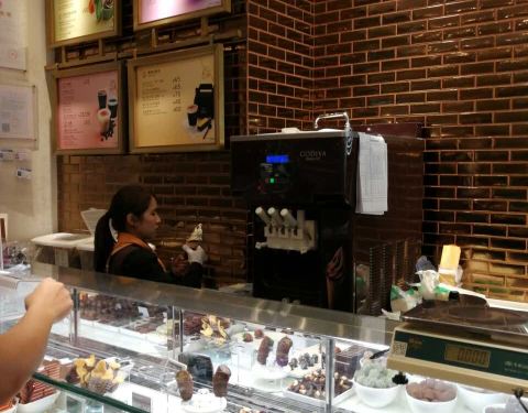 - 除了一颗颗巧克力以外,还有一系列巧克力的衍生产品,如:雪糕,饮品、蛋糕等。饮品和雪糕是现场现做的实用