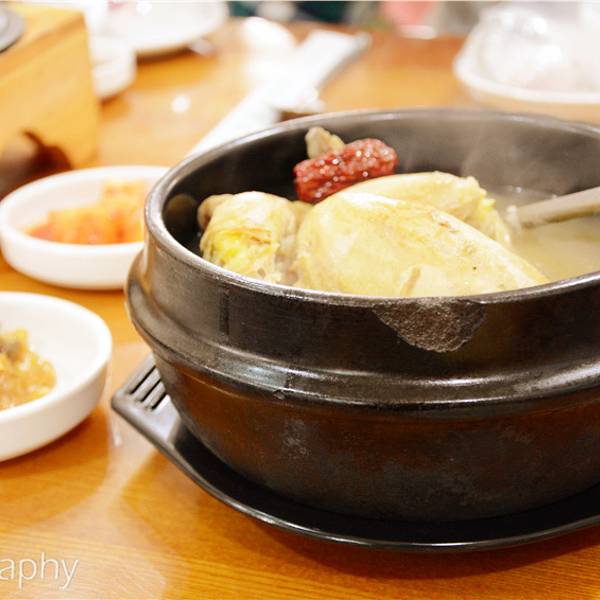 想吃参鸡汤有些时候了,这次来延吉绝对不能错过。吃完拌饭还没等消化完全,便走向下一个目标——元奶奶参鸡汤。参鸡汤和糯米鸡是店里的特色,参鸡汤是用一整只子鸡煲制而成,鸡肚子里面填满糯米和人参等中药材,汤味中散发出浓浓的人参香味,着实让人着迷;糯米鸡的肚子中也填着相似的东西,只不过是在糯米中蒸制而成,糯米饭中浸透着鸡肉和药材的气味,鸡肉中也充满着糯米香。赠送的小菜依旧内容丰富,很喜欢圆白菜的做的咸菜,很可口。