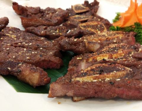 烧鸡,皮脆肉嫩的,几好吃。牛仔骨貌似系用类似羊肉串的做法,肉质口感被改变,不会韧,但没有牛味了