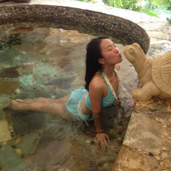 室外泳区水有点深,小鱼温泉里的鱼太大了,咬着疼