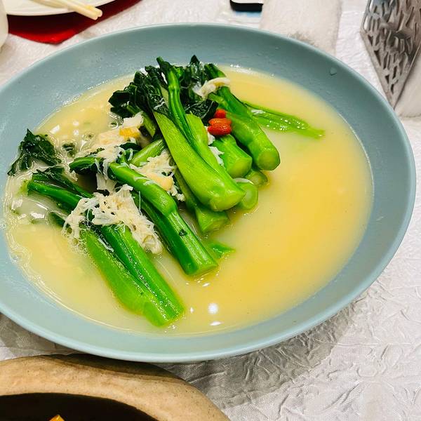 不知道是因为预感到飞机要延误的心情不佳,还是菜品真的太普通,我没有办法给这家店我的bottom up分。(给4-0.1分好了) 但是有一点是肯定的,这家店的菜没有办法改变我烦躁的心情。 上冰水,谢谢,我给满分,然...不知道是因为预感到飞机要延误的心情不佳,还是菜品真的太普通,我没有办法给这家店我的bottom up分。(给4-0.1分好了) 但是有一点是肯定的,这家店的菜没有办法改变我烦躁的心情。 上冰水,谢谢,我给满分,然后就开始减分了。 羊肚菌鲍鱼炖花胶,不扣分,大概是我喝不惯,然而蛋白质的酸味确实太明显了。 乳鸽,标准好吃,不过蘸料的搭配带出了很多细心,这个是好评的。 炒饭的功力很到位,米粒都散发着香味,豆豉鲮鱼炒生菜的火候和调味都让我满意。 这么看来,是我心情太差了。。。。(并没有减分呀)大概是午饭没有喝酒吧。 就这么决定了,过段时间再来一次,重新点评吧。