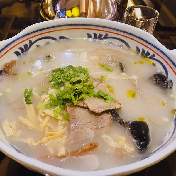 就在酒店周围找了一家老店,其实他家招牌都是烤鱼啊什么的,但是都适合人多聚餐,环境古色古香干净挺好的,别桌聚餐high了还说要诗朗诵 我一个人就点碗牛肉汤粉丝吃吃 哈哈哈哈其实也不饿 八点了 挺好吃的