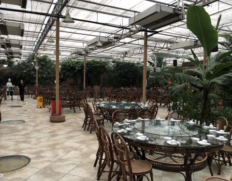 来平湖玩,回上海前顺便在此吃个中饭。其位置好,就在高速入口附近。 它是个庄园式农家乐,地方很大。也有亲子乐,也有土特产可买。吃饭则在一个大厅中。用绿色植物做了很多隔断。菜品中酱鸭等当地特色均非常好吃,另外也吃到了时鲜的紫藤花菜。可惜当时只能做成炒蛋,做得实在太油。