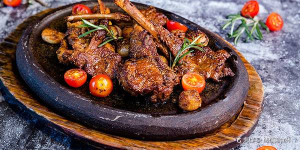 - 香草烟熏安格斯小牛肉,肉发出滋滋的声音,有食欲。水果树是赠送的,还挺好看的