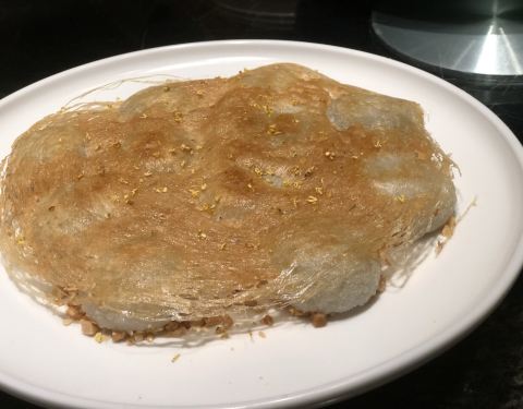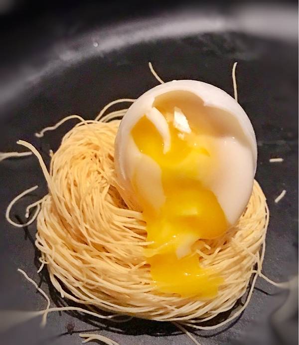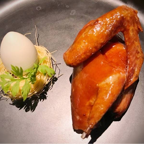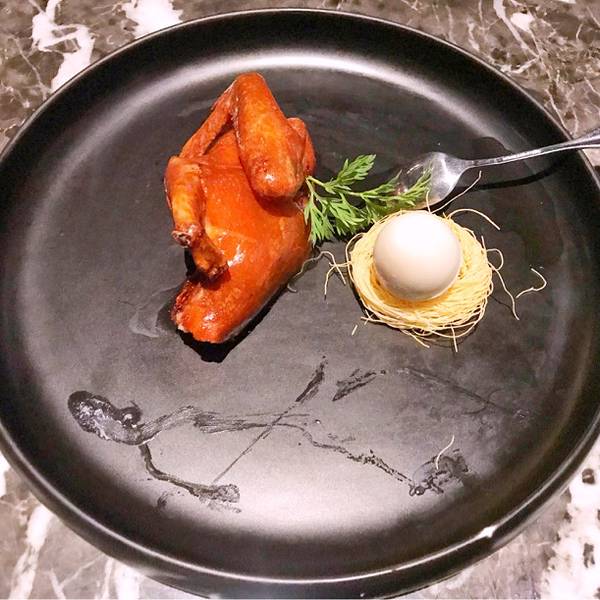 #鸽子蛋#招牌菜,按每个人一份来上菜,一份半只乳鸽,还有“鸽子蛋”,乳鸽真的好吃,外皮酥脆,撕开鸽子腿的一刻,肉汁滴下来,肉质细腻又嫩。“鸽子蛋”不是真正的鸽子蛋,外皮白巧克力,内里是芒果酱,看似鸽子蛋,其实是完美的甜品。