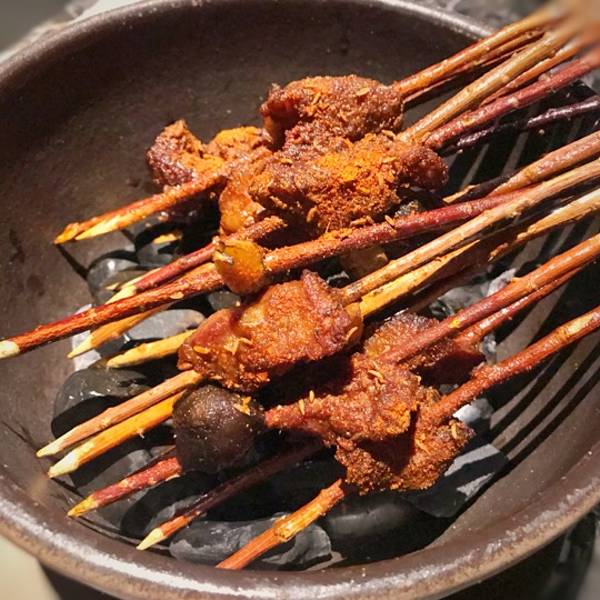 #新疆红柳枝安格斯小牛肉串# 牛肉瘦中带点肥,香嫩多汁,还配有好吃的菇。
