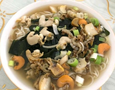 吹着海风还挺舒服的。点了两碗海鲜面,15元一碗,港口附近就是贵呀。面条是挂面,所谓的海鲜就是蛏子、海虹、海带等等,味道倒是还可以。看到别桌点的水饺,紫菜馅的,感觉还不错的样子的。 2019-10-22 08:22来自携程 网友