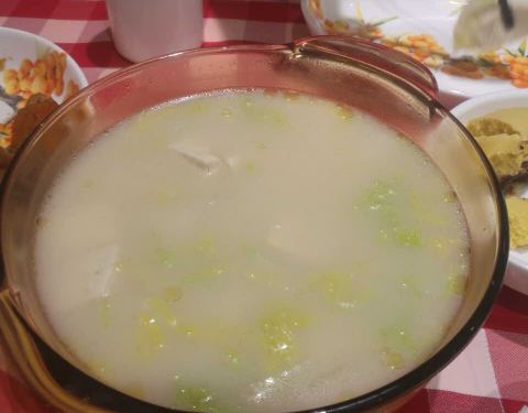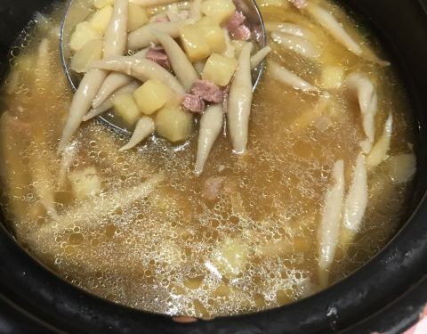 力荐小锅牛肉、鸡汤小白菜、玉米汁、馍馍,河虾好新鲜