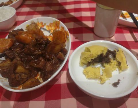 第一次去牛大骨没了,一层主管特意给老人送的空心面,服务是太热情,点的每个菜都好吃,面食也是很棒的。推荐羊肉汤的莜面鱼鱼,牛大骨(第次去特意又点的),羊肉串,莜面蒸饺。对了还有黄米面的油糕。