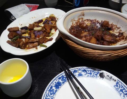 味道不错,蛮有当地特色。装修的也不错,就是服务员的态度不是很好。有待改进。推荐竹笋烧牛腩,还有春卷。羊排味道不错,分量也足,但是因为我们人少,吃到后面非常腻。