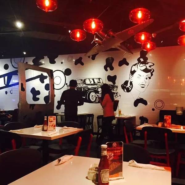 之前去他家其他分店都是吃汉堡的。 这家地铁静安寺7号线10出口距离最近。环境很有特色。到处是奶牛元素。墙上的涂鸦也是。最近面食吃多了想吃饭 看到这家还有海南鸡饭 评价也都不错 于是想试试看海南鸡饭份量蛮多的 两个人吃也够了 海南鸡很嫩 差不多是上海吃到现在为止觉得最好吃的之一了。 旁边的萝卜汤和臭豆腐是点缀也是加分项 臭豆腐里面是普通的豆腐 炸的苏酥脆脆的 没想到还蛮好吃的鸡油饭是热的 但是不是新鲜现做的 微波炉里面打过的 吃到后来发现里面有个食品包装 叫了服务员 店长还是店主好像是墨西哥人哈让服务员给重新上了一碗鸡油饭 又加送了芝士条和冰咖 鸡油饭味道是对的 也有生姜味 如果是现做的就更好啦 芝士条味道也不错 芝士会拉丝冰咖蛮大一杯的 配了糖和奶精。wifi不要密码 速度很快 下次来试试鸡肉脆饼和色拉