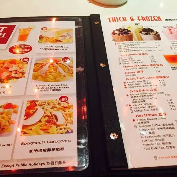 饼干奶昔 经典芝士汉堡 奶昔 榴莲奶昔 汉堡 香蕉奶昔 科布沙拉 煎三文鱼意面 开胃菜总汇 鸡肉脆饼 烤肋排1/2 辣肉热狗 布朗宁 色拉 芝士条 布朗尼 苹果派 巧克力奶昔 烤肋排 鸡翅 鸡肉铁锅饭 炸鸡柳 薯条 海南鸡饭