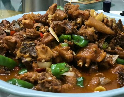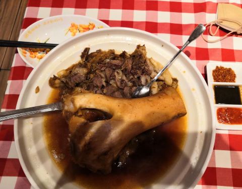 来吃饭的都是亲朋好友一大家人,点上几个炒菜,弄上几瓶白酒,炖肉吃起来肥而不腻、酥嫩软烂,来上一碗地道的刀削面浇在上面,边吃边唠家常,很是满足。