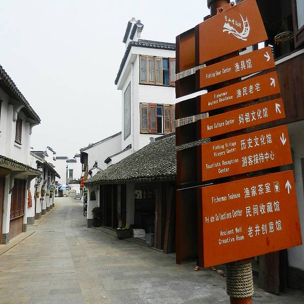 金山嘴渔村历史悠久,这里成陆于6000年前,位于杭州湾北岸,小村子到海边只有20米的距离,中间只隔着一条公路。从这个“金山嘴老街”的标志下台阶便可进入到村子里。这个村子的仿古建筑都是近两年修的,风格统一。由于是早上过来的,游人很少。看了一下指引牌,这里有几个小型的博物馆或者纪念馆,都是免费开放的,可以了解一个渔民的家庭生活以及观看展出的渔具。村子里的一条小河,沿街的建筑都是古式。村子并没有开发完,继续向里走去就是普通的民居,还没有装修成这种风格,自然也没有游人。 展开