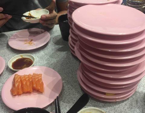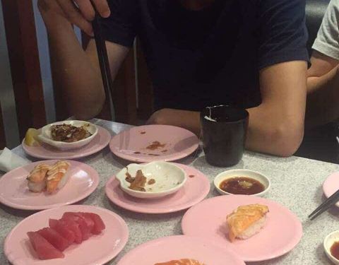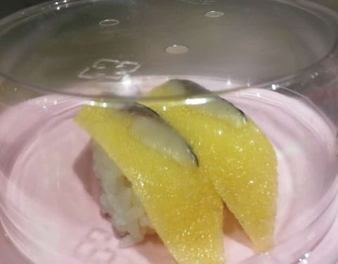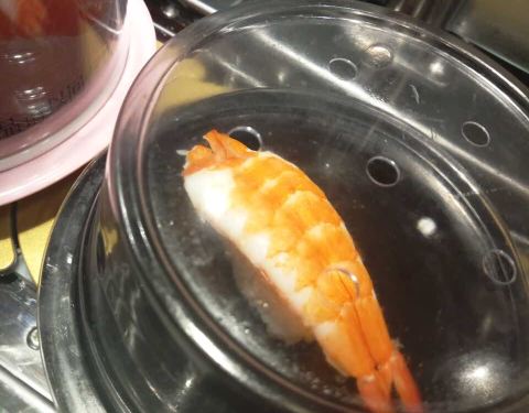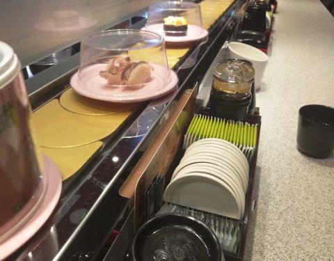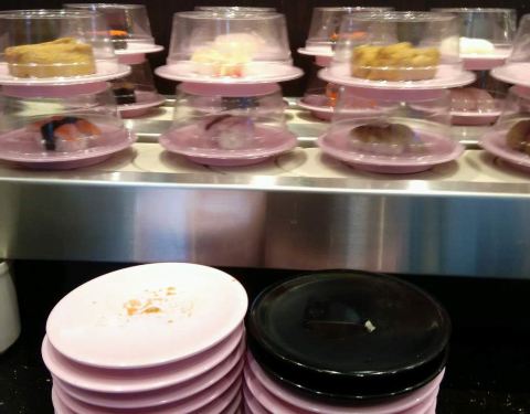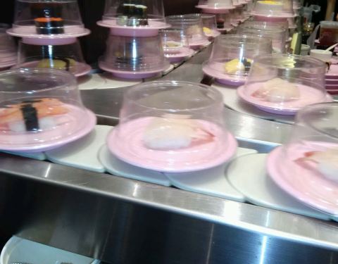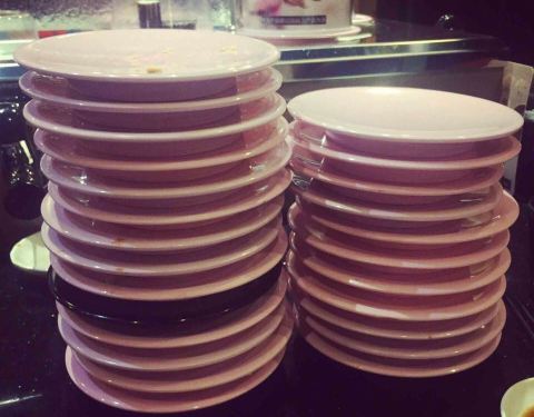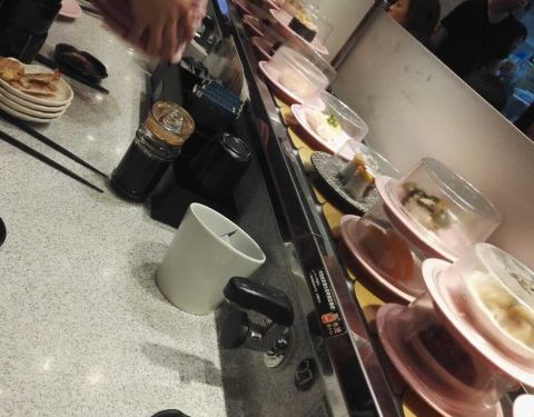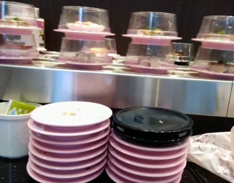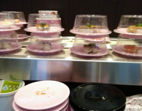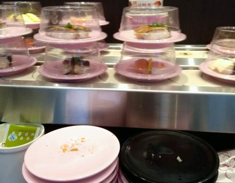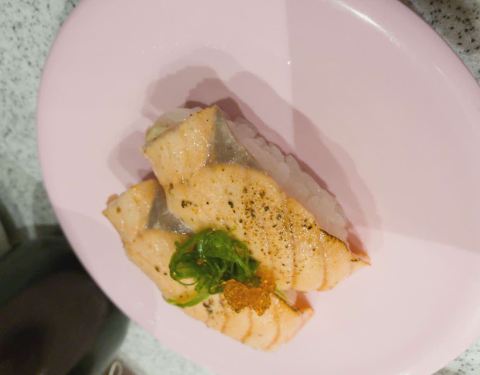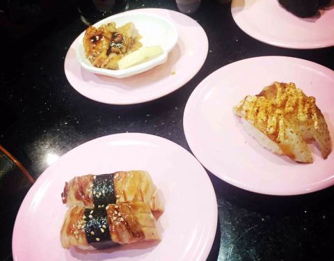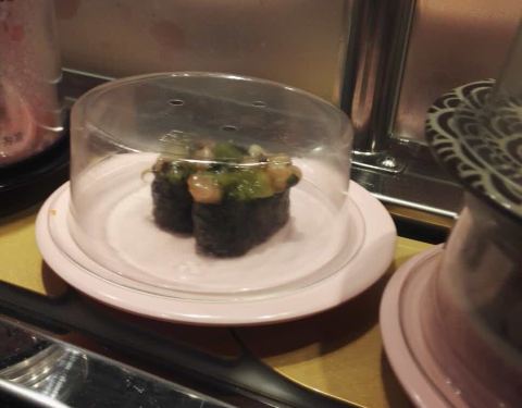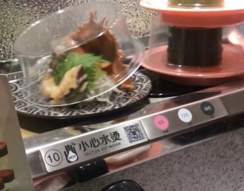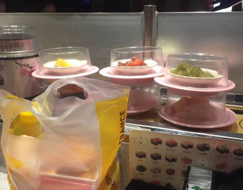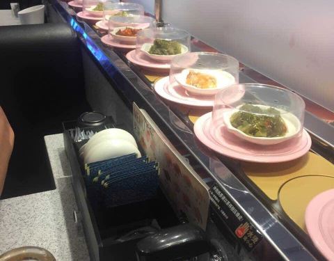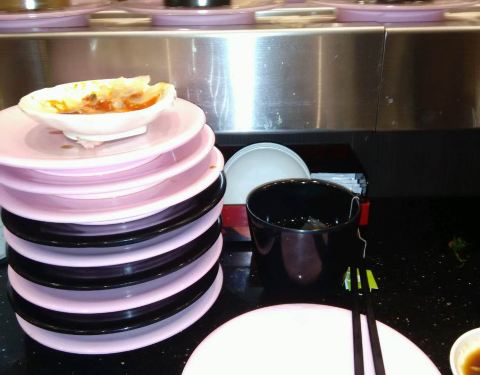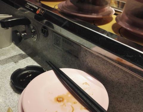 口碑活动太给力了!吃了4碟,24元,口碑5折减了10元,抽到晚餐红包再减5元,实付9元。 就是这家店很小,到处都显得很逼仄,大夏天的空调不给力,吃几个寿司也满头汗。食物尚可,算是对得起6元/碟的价钱了。