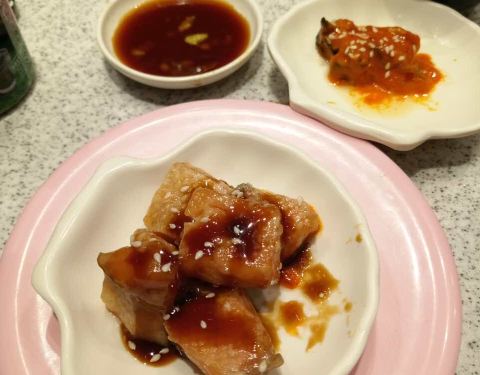 三文鱼刺身,六块钱三片厚切的三文鱼鱼生,新鲜又好吃入口香滑,很喜欢吃,每次去点很多。 鳗鱼寿司,必点产品之一,酱汁恰到好处。 中华海草,甜甜的海草餐前必备,解腻的好东西。 玉子烧,好东西很喜欢吃。