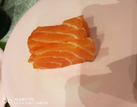 - 三文鱼刺身,六块钱三片厚切的三文鱼鱼生,新鲜又好吃入口香滑,很喜欢吃,每次去点很多