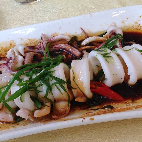 号称厦门NO.1的酱油水排挡。店里没有菜单,直接在海鲜池边看边点。镇店的清蒸鱿鱼, 酱油水的做法,浓…