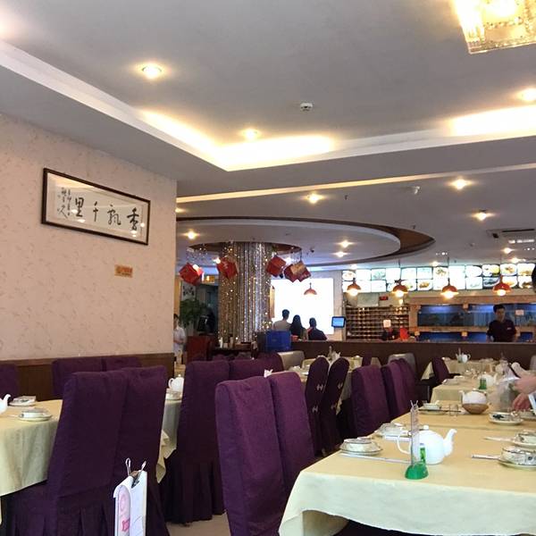 环境类似酒店一层大堂,有很多养海鲜的大鱼缸,里面各种海鲜都活蹦乱跳的,桌子上的桌布有点旧,座椅靠近窗口的那排是沙发,人很多,中午饭口11点去空位,12点吃完的时候就是爆满了。