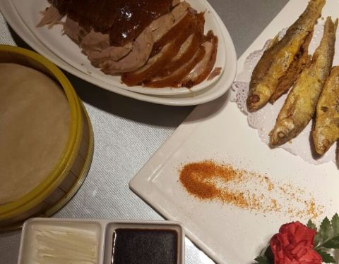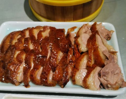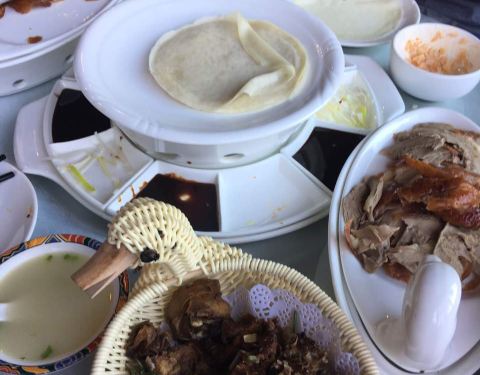 口味还行,把皮和肉分开的,皮烤的很一般,肉包着还可以。服务有点慢。送的鸭汤不错