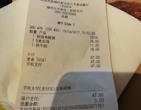 每一个火车站 肯定会有一个麦当劳和肯德基 特别是高铁站 福州南站同样如此 都是全国的连锁店了 标准什么的都一样 所以也没有太多了说的 就是人多 希望大家吃完就尽快走人