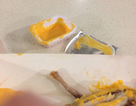...鸡翅芝士,结果就直接给我一个普通的鸡翅,然后又塞了个芝士酱让我自己弄,一点都不大的那么大鸡翅哼