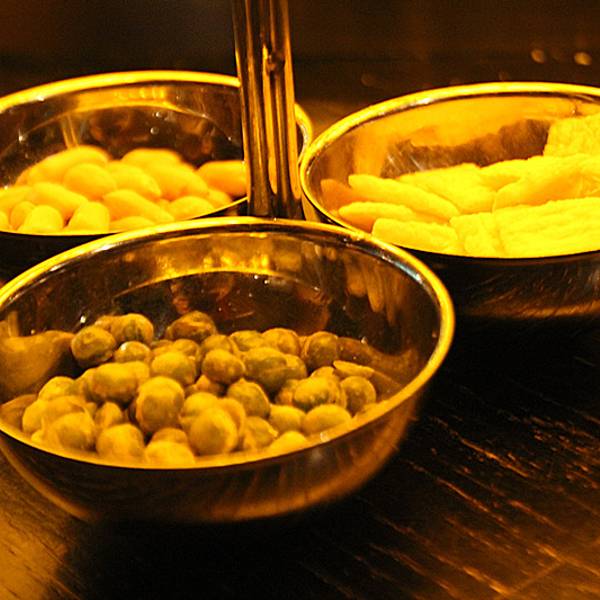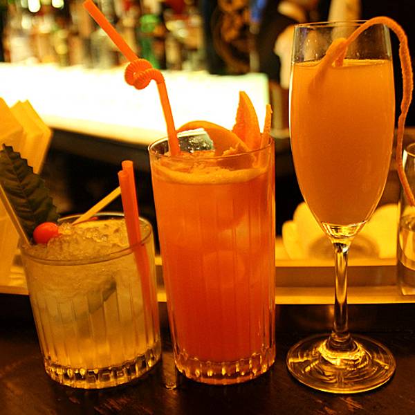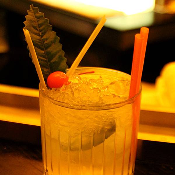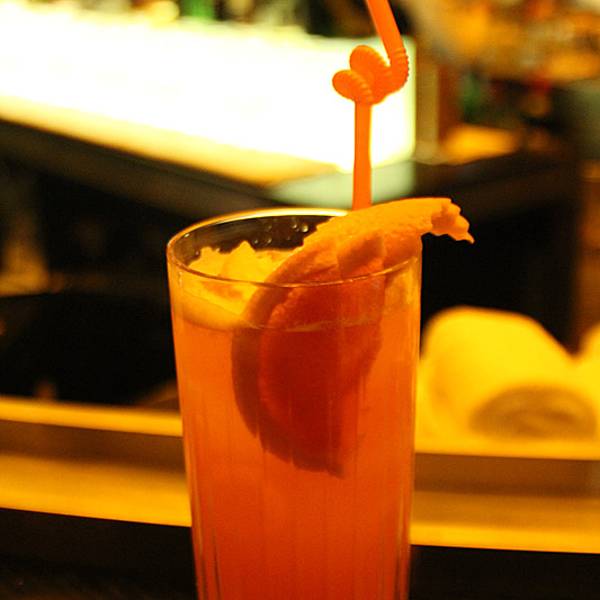 吧台位可以看到调酒师创作一杯杯鸡尾酒的过程,贴心的在桌角包了一圈软软的皮质海绵。随调酒赠送小食。青豆、锅巴和花生。“酒鬼”当然要有下酒菜才对。和朋友每人一杯鸡尾酒。点了Sex on the bund。被名字吸引。喝起来是淡淡的水果味,后味微微的红柚的苦。适合女孩子。另一杯泰国风的调酒用了香茅,喝起来很清爽。酒精度略高于Sex on the bund。调酒师的服务态度很好哦,还可以根据客人的喜好调制不同酒精度、颜色,口味的鸡尾酒。