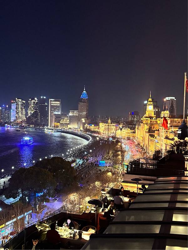 天气晴好的时候坐在露天位看外滩的美丽夜景。想和三五好友安静聊天就坐在室内区。