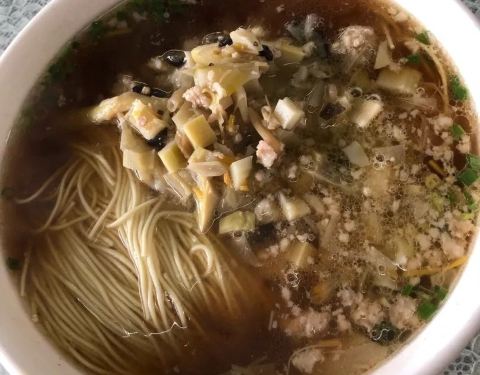 ...最多的是爆鳝虾仁面,不过她家的排骨也是很畅销的,卖的最快了,我们想荤素搭配,所以还点了素什锦面