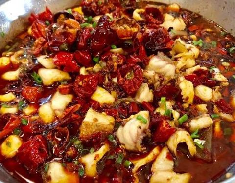 选用的都是很正宗的麻椒辣椒各种复合香料,酸菜鱼的酸菜也很好吃,上面满满的蒜蓉和葱丝然后热油一激,完美