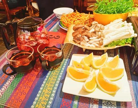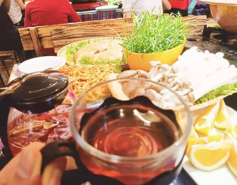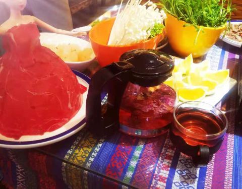 铜锅腊排骨火锅超级好吃,口味适合清淡的人,但是口味重的人也值得一试,因为真的很好吃,菜量也很多,我们两个妹子,最后排骨剩好多,吃的很饱,而且很火爆,需要排队等座,但是值得去等!服务态度也很好,就在古城木府边上很好找,对了,茶也是很清香的!