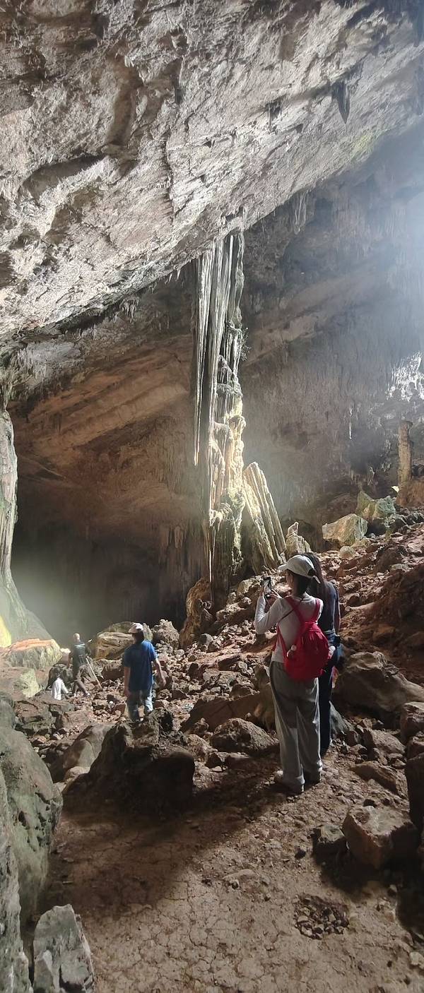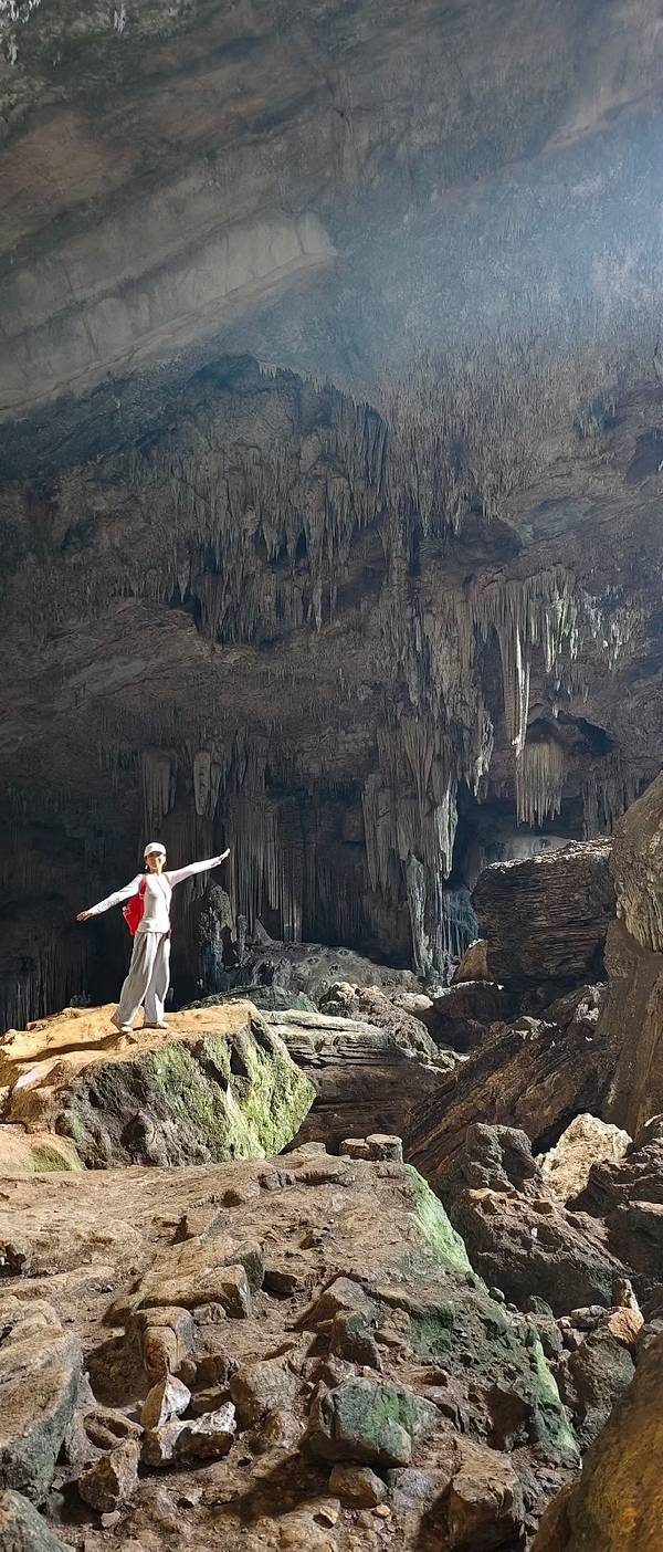 走进桂林平乐二塘镇乐塘村的朝天岩,便闯入了大自然耗时亿万年雕琢的地下宫殿。这座原生态喀斯特溶洞藏于山腰,因洞口宽敞朝天而得名,气势恢宏,被誉为罕见的大型厅堂式洞穴,洞顶最高近60米,内部洞洞相连、层层叠叠,原始风貌保存完好。 沿山间小径步行十余分钟抵达洞口,抓着绳索缓缓下入,清凉湿润的空气扑面而来。洞内钟乳石、石笋、石柱千姿百态,有的如擎天巨柱,有的似流泉飞瀑,还有的像瓜果生灵,形态逼真,在光影下更显奇幻。最令人惊艳的是丁达尔光效,阳光穿透洞口洒下道道金光,穿透薄雾,将幽暗洞穴点亮,宛如仙境降临,随手一拍都是大片。 漫步其中,脚下是历经岁月的石田,耳畔是水滴轻响,每一步都充满探索的惊喜。这里没有过度开发,保留着最本真的野性与壮美,既能感受地质奇观的震撼,也能体验户外探洞的乐趣。 一洞藏天地,光影醉人心。平乐朝天岩用自然鬼斧神工,书写着桂北山水的隐秘浪漫,是小众探秘、亲近自然的绝佳去处。