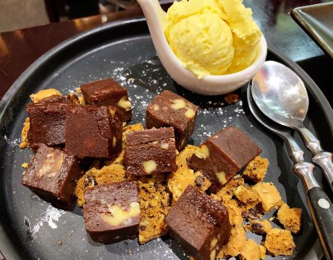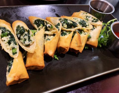 - 菠菜鸡肉春卷,还有巧克力布朗尼(配香草冰淇淋)很好吃。牛油果沙拉里含有藜麦,比较爱吃,沙拉味道一般