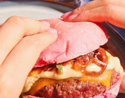 一直以荷尔蒙系汉堡作为主打的蓝蛙,这次新品竟然出了一款萌萌哒的珊瑚粉汉堡!颜色少女心十足,不光能吃还能拍,而且珊瑚粉色还是2019年的流行色呢~ 【珊瑚粉汉堡】里的汉堡坯是特制的珊瑚粉色汉堡坯,是将新鲜...一直以荷尔蒙系汉堡作为主打的蓝蛙,这次新品竟然出了一款萌萌哒的珊瑚粉汉堡!颜色少女心十足,不光能吃还能拍,而且珊瑚粉色还是2019年的流行色呢~ 【珊瑚粉汉堡】里的汉堡坯是特制的珊瑚粉色汉堡坯,是将新鲜的红心火龙果原汁加入到面团里,手工揉制精心烘焙而成,比以往的汉堡坯更松软些。【芝士狠浓牛肉汉堡】全是天然芝士,口感香浓是合成芝士不能比的。第一层是软化的车达芝士,再铺上马苏里拉芝士和帕玛森芝士的融合酱汁,最后撒上略带辣味儿的青柠车达芝士块儿,解腻又提香。吃上去芝士的层次丰富,再加上牛肉饼的肉香,一大口咬下去炒鸡满足。【烟熏三文鱼西柚香橙沙拉】带着淡淡的果香,搭配熏过的三文鱼,咸淡适中。新鲜的西柚、香橙、牛油果和冰草沙拉,光看颜色就要吞口水啦~
