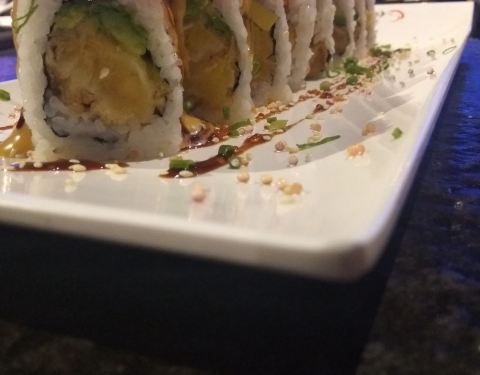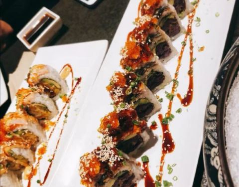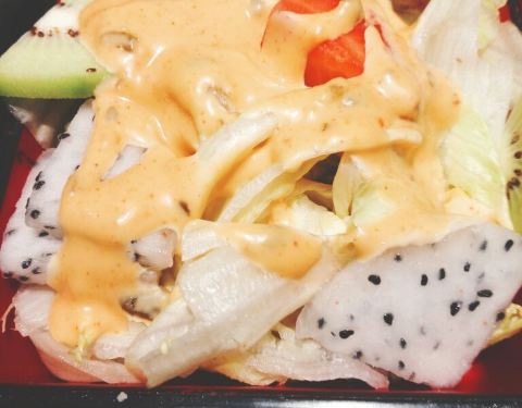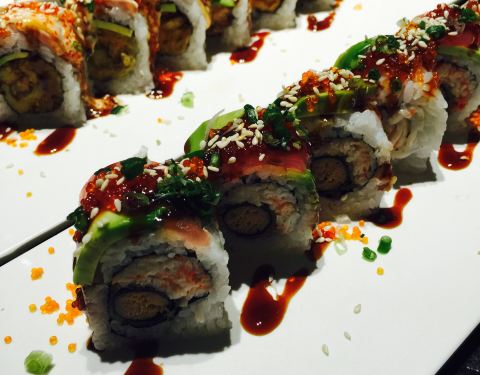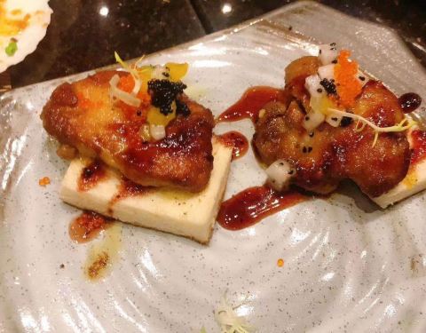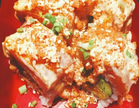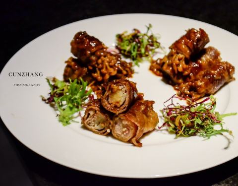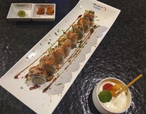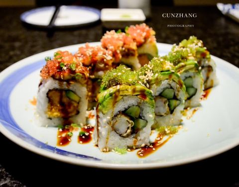 大悦城里的人气日料店,餐厅创始人身为加籍华人,将北美口味融入到东方料理中,独具创意。秋天的童话是每桌必点的招牌菜,单是名字就取得很有诗意,颜值更是无可挑剔。三文鱼片中间包裹着红薯寿司,淋上鳗鱼汁、千岛酱、蟹籽、芝麻等丰富配料,层次感极强,入口鲜香。