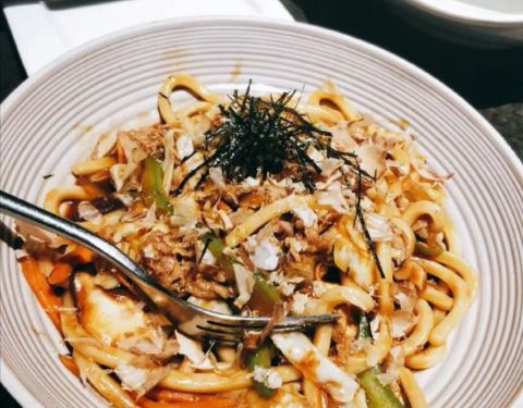 寿司是可选种类最多的,点了招牌“秋天的童话”,沾满鱼子酱和酱料,美味。温沙拉值得推荐,锅底炒热盖上生菠菜叶,倒入瓜子榛仁等坚果搅拌即食。炒乌冬面是每次必点,味道也挺重的,上面覆盖上满满的鱿鱼丝,一直在热气中舞动。