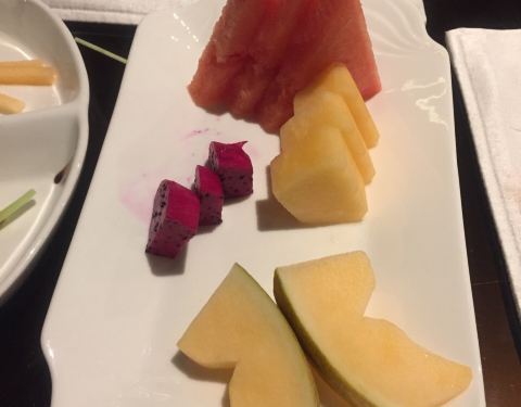 - 四川担担面也好好吃。虽然不是重庆口味,汤底很好喝。今天终于有机会吃到了。而且第一次看有哈密瓜配菜的