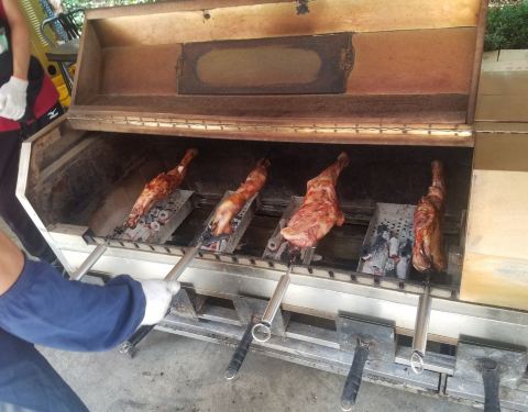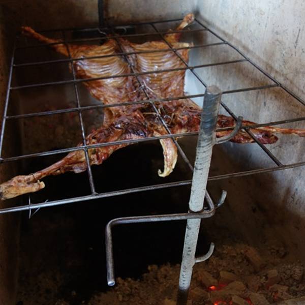 - 我们吃的是烤全羊和几种素菜,烤全羊果然特别好吃,羊肉烤的又酥又嫩,一口吃下烤羊的香味充满口腔