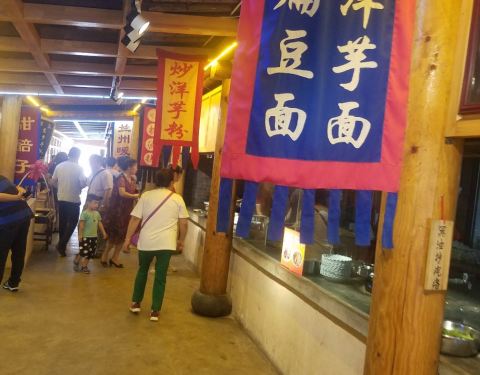 玉泉山庄实际上是一个美食集合地嫁一个店铺有很多很多家,下面的具体的小小的这种各地的小吃的店铺规...
