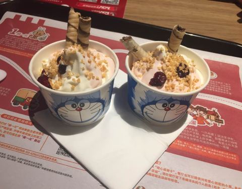 好吃。草莓味的冰淇淋好吃。哆啦A梦的盒子好看。推荐