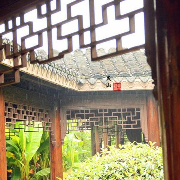 灵山蔬食馆里用餐等雨停, 一碗素面,一笼素包。 屋檐下雨水串成珠帘。我们望着窗外发呆。 素简光阴,如此寂寞美好。 那一时刻,心中透亮,仿佛雨打后的山林,片片叶子都闪着光。