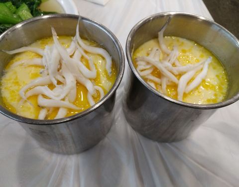 灵山大佛景区真的太商业化了点,吃饭的地方不少,本想吃素食,后来看到套餐不错,就进来了。 选了太湖三白E套餐148元,先到收银台付款,拿着小票找了个靠窗的位置,就餐的人多服务员太少,满场追着找,不过给了小票后立即来换了桌布,送上餐具。 双人套餐量不少,两个人都没吃完,胃口小的三个人完全能吃,素面真的不好吃,寡淡无味,白虾有几只死了,蘸醋会比较好,半条白鱼不错,也是蘸醋更好,银鱼炖蛋也偏淡,无锡排骨甜甜的很合本人口味,素菜包的馅很好吃,本人只吃馅没吃皮,在景区这样的套餐还是挺不错的。